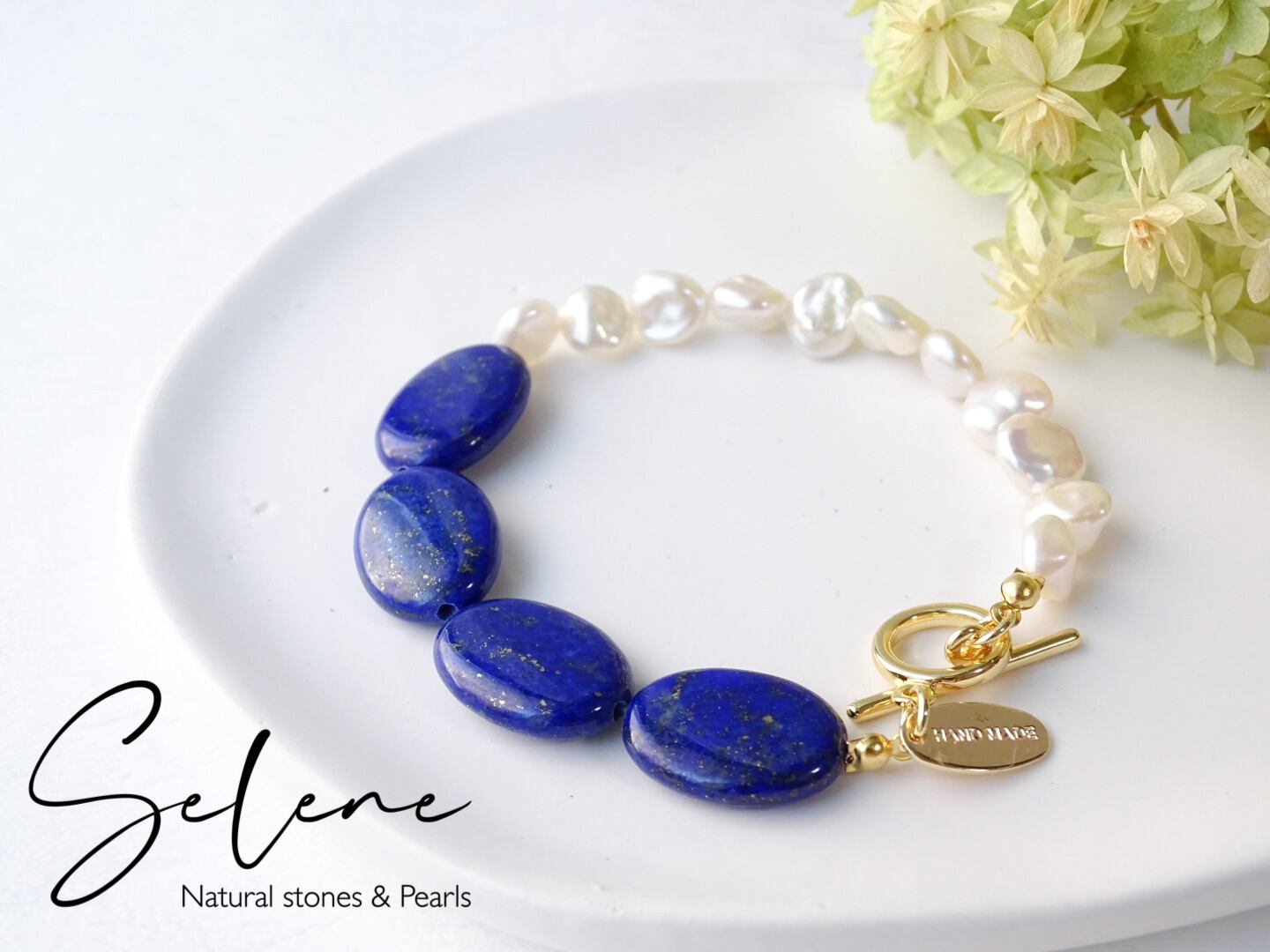 艶々で内包のキラキラもたっぷりな高品質なラピスラズリとバロックパールのブレスレットは、とてもオススメです!これからの季節にピッタリ!