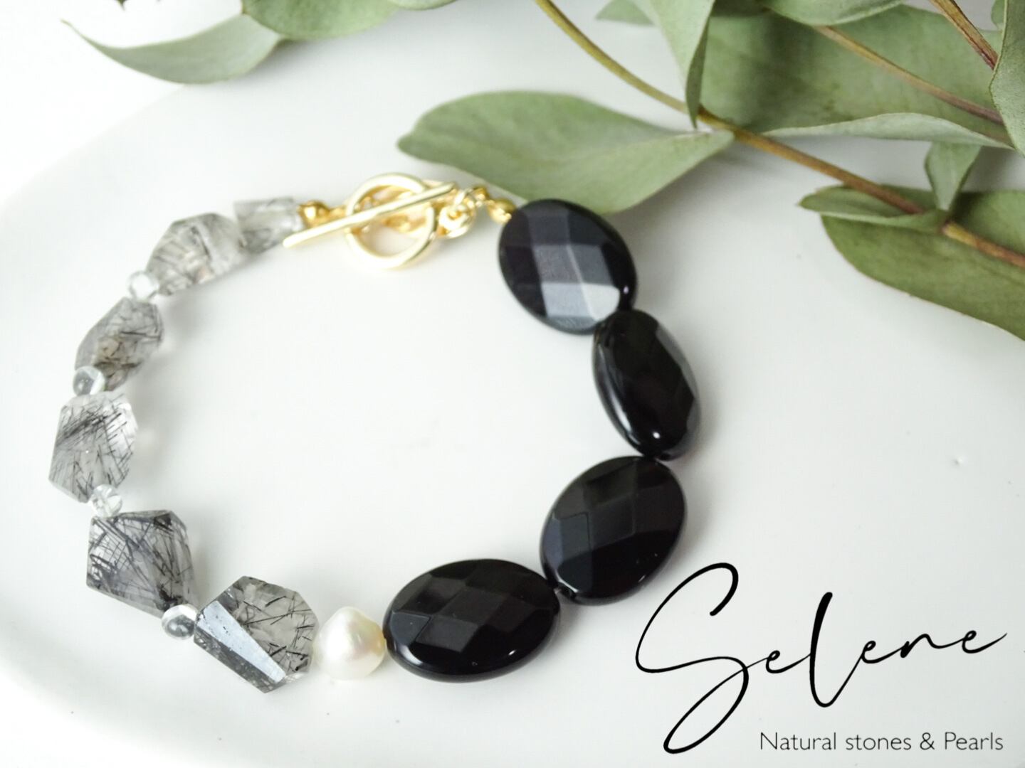 新価格《 Blackrutile × Black onyx × Pearl 》Bracelet
