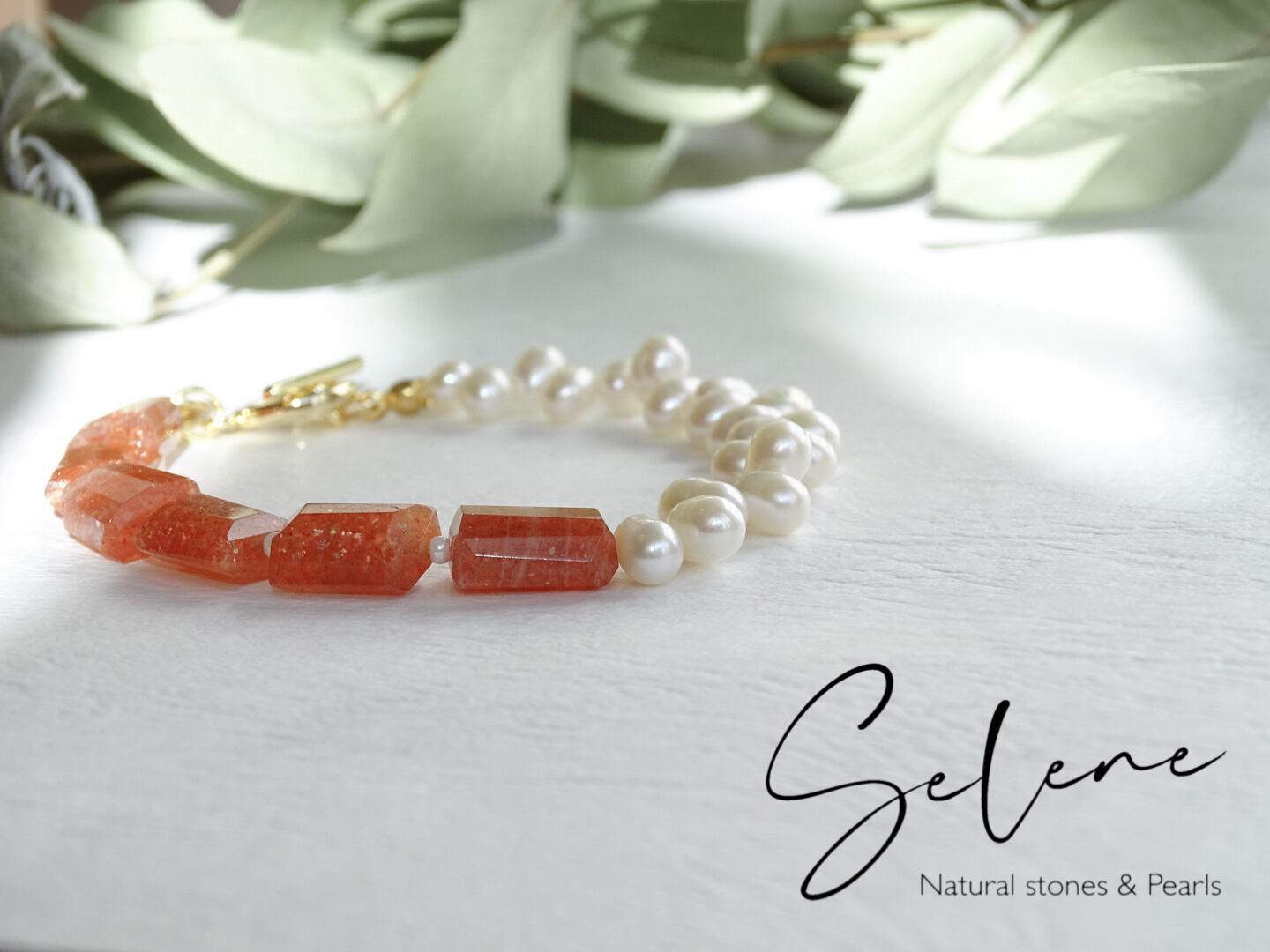 濃い色合いのサンストーンはキラキラがたっぷり!落ち着いたオレンジカラーなので、今の季節にもぴったりです!