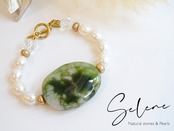 存在感たっぷりなフラワーアゲート(グリーンの染め)を主役にしたブレスレットです!