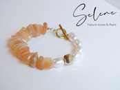 《 Orange Moonstone × Haematite × Pearl 》Bracelet